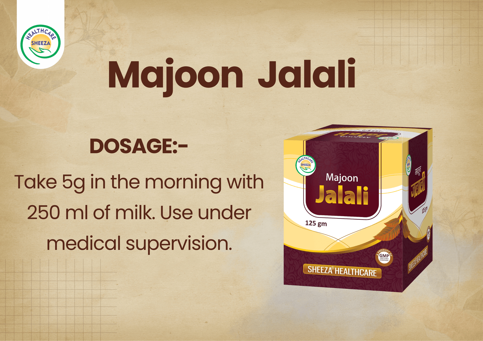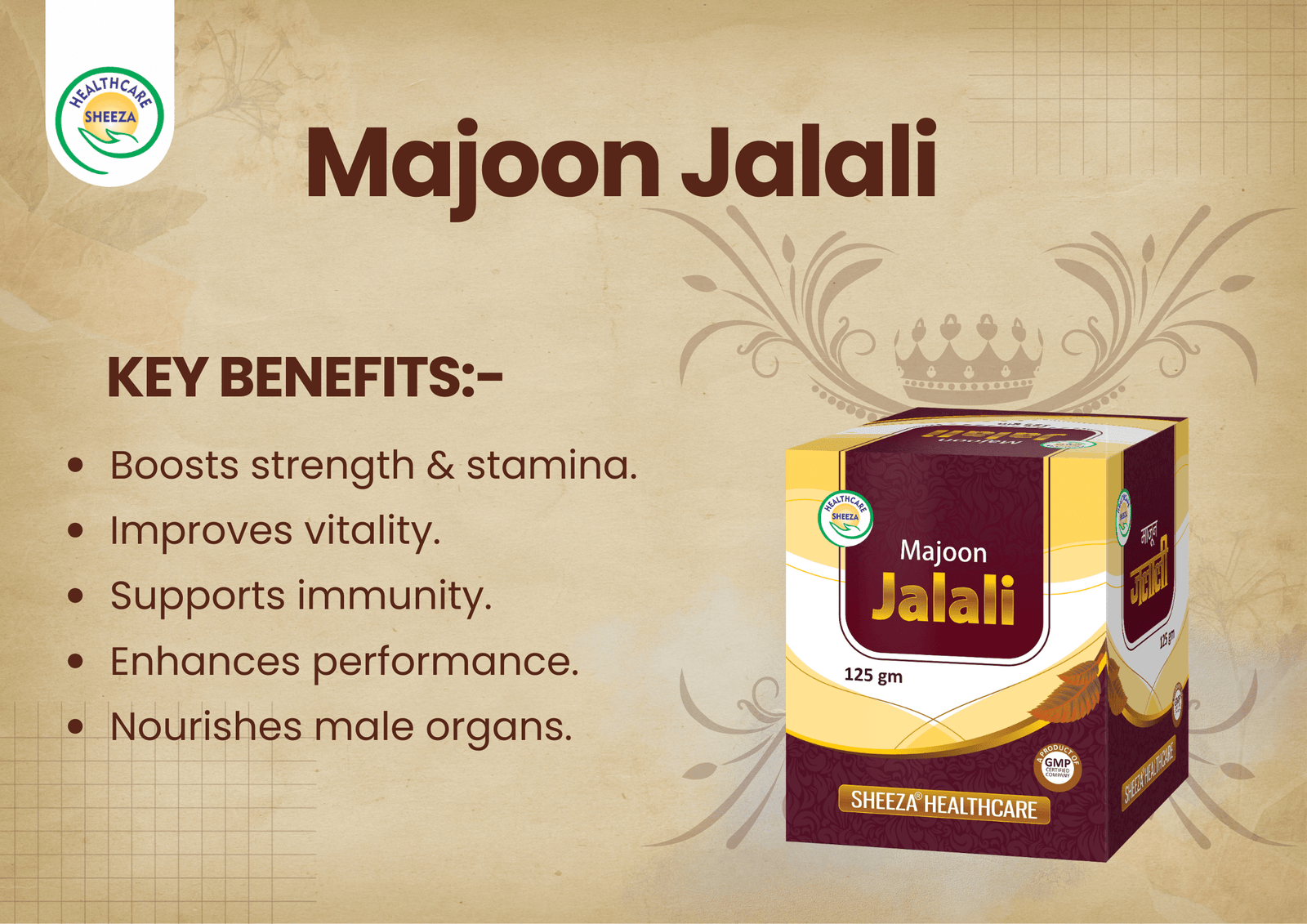 Re-energise your body naturally with Sheeza Majoon Jalali, a powerful Unani formulation crafted to support strength, stamina, and daily vitality. Perfect for men dealing with weakness, low energy, or reduced performance.